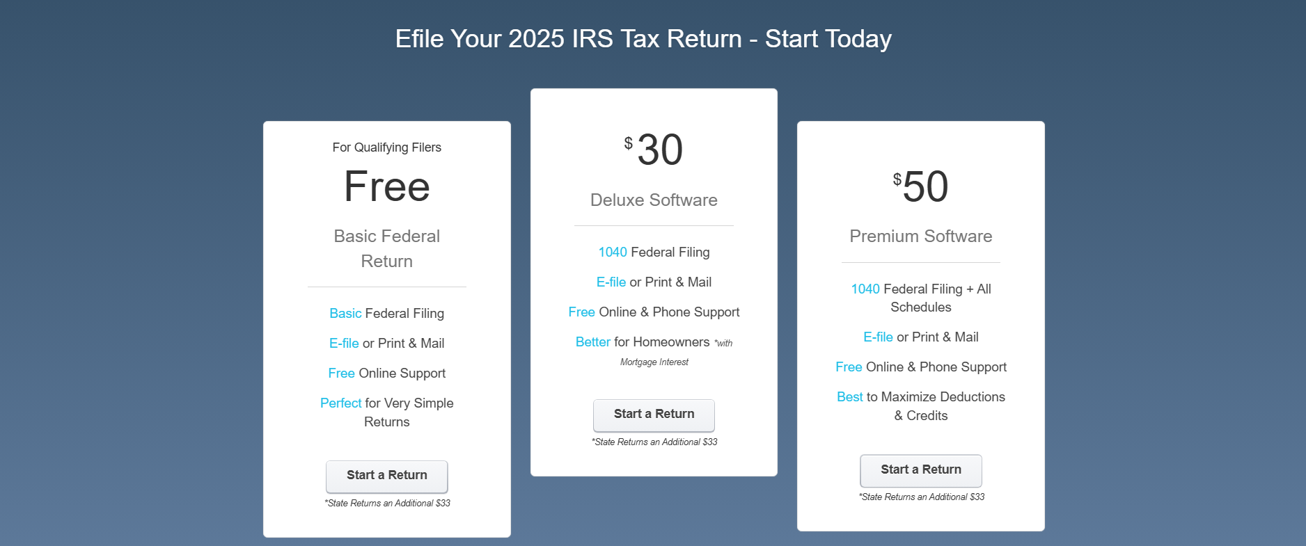 Start your tax filing journey today with us and enjoy a simpler way to file your return.